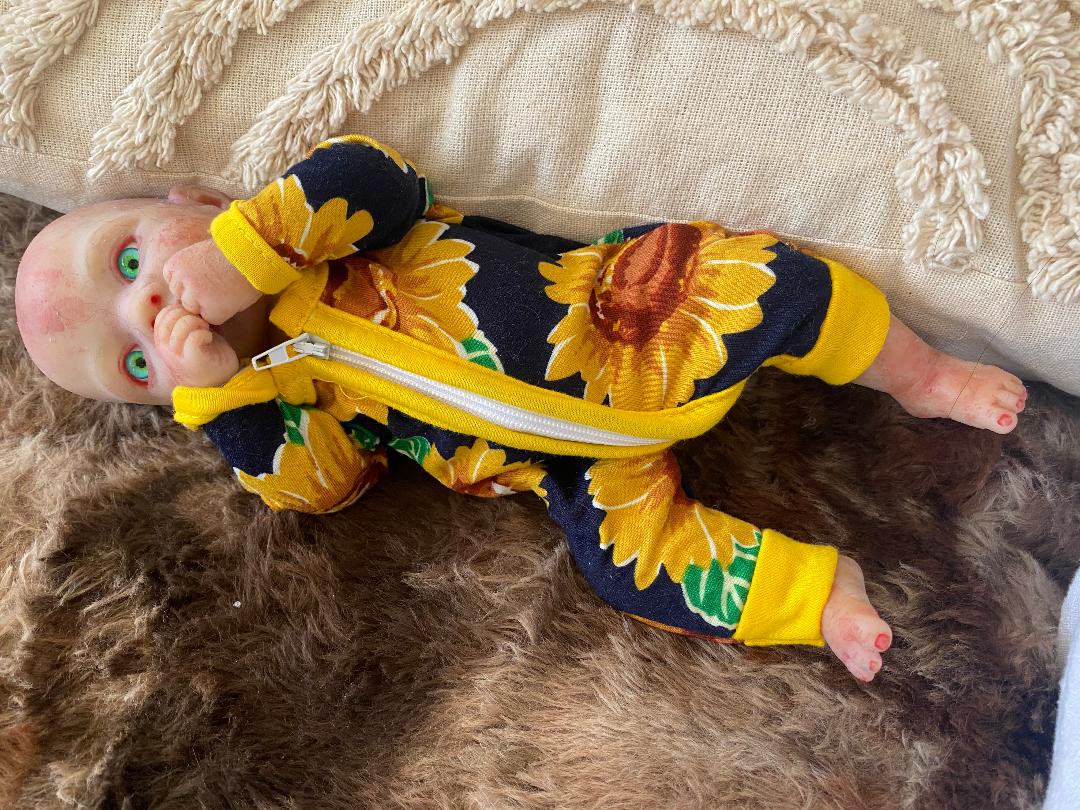 She has an almature in her limbs, and can open her muth and put the dummy in. Painted by me